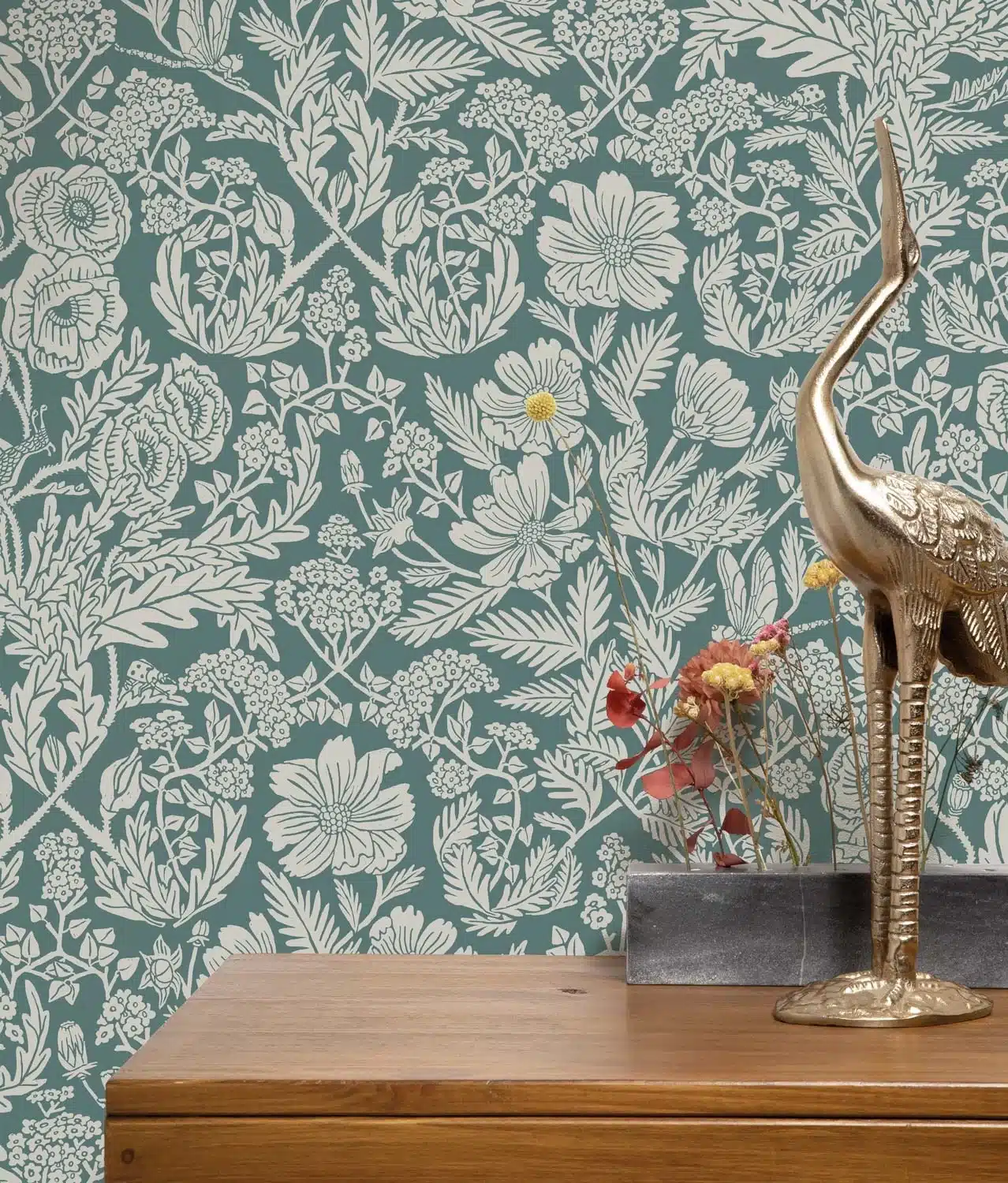 Duurzaam Behang | Getekende Bloemen | Blauw |100 x 280 cm | Kek Amsterdam | Peltenburg Natuurverf