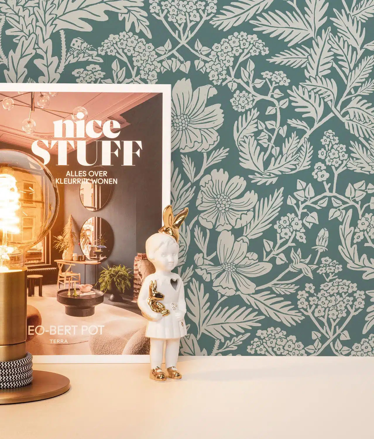 Bekroond illustrator Floor Rieder heeft voor ons dit behang ontworpen met een tijdloos patroon van getekende bloemen, bladeren en takjes. Geschikt voor zowel een modern als klassiek interieur. Kies uit 4 eigentijdse kleuren.