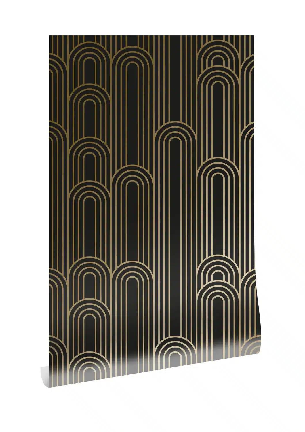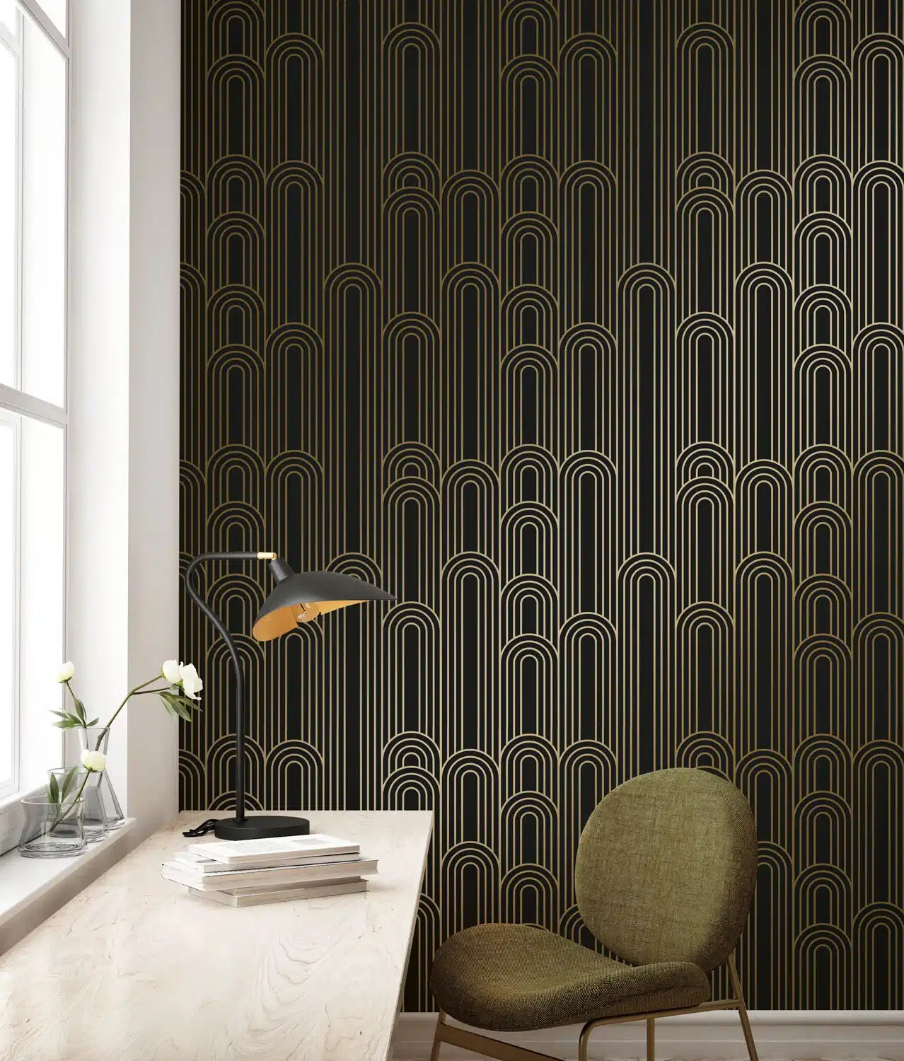 Duurzaam Behang | Golden Lines | Goud geometrische lijnen | Zwart I |100 x 280 cm | Kek Amsterdam | Peltenburg Natuurverf