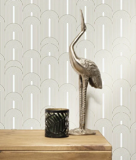 Duurzaam Behang | Golden Lines | Goud grafische lijnen | Off-white |100 x 280 cm | Kek Amsterdam | Peltenburg Natuurverf