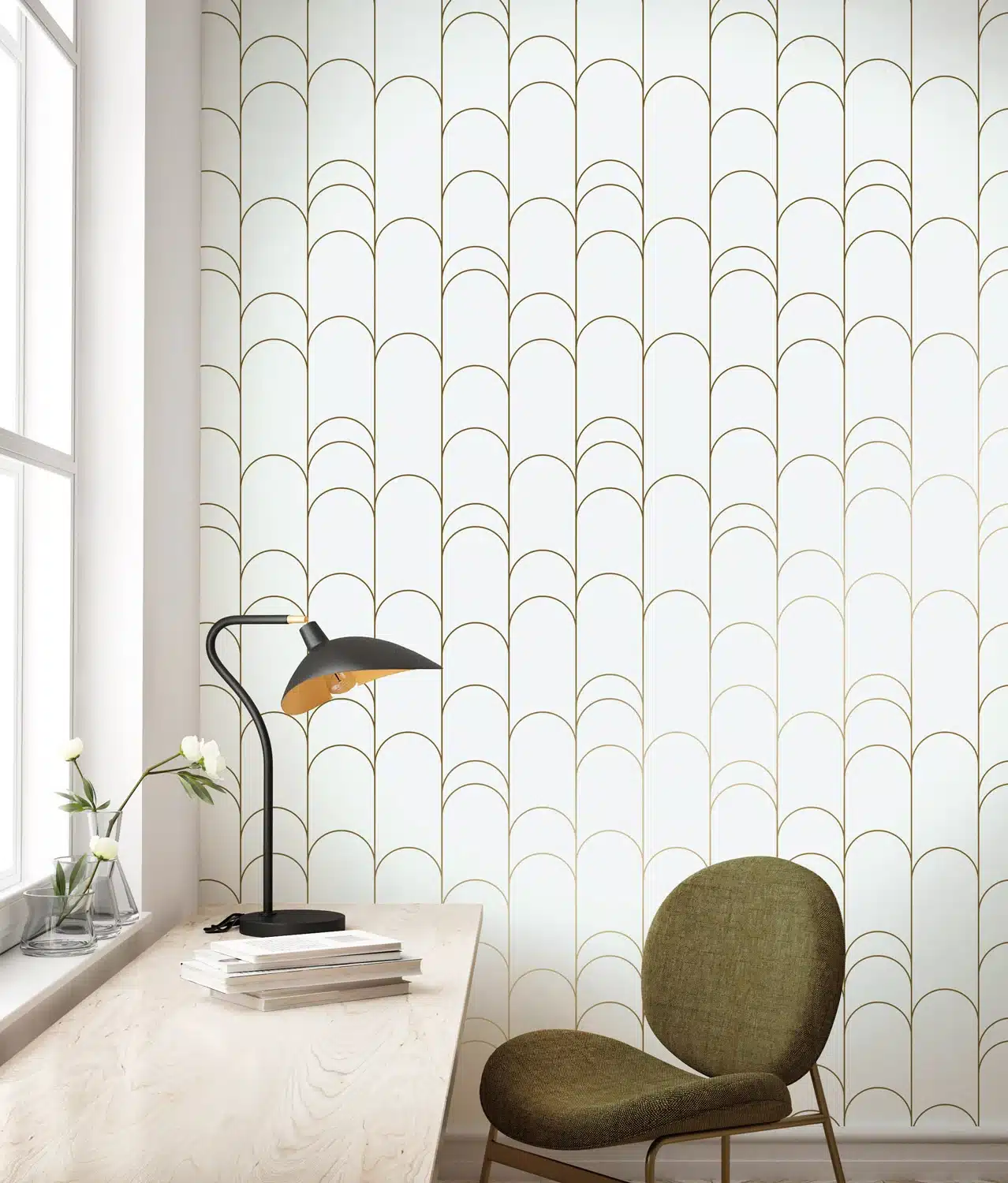 Duurzaam Behang | Golden Lines | Goud grafische lijnen | Off-white II |100 x 280 cm | Kek Amsterdam | Peltenburg Natuurverf