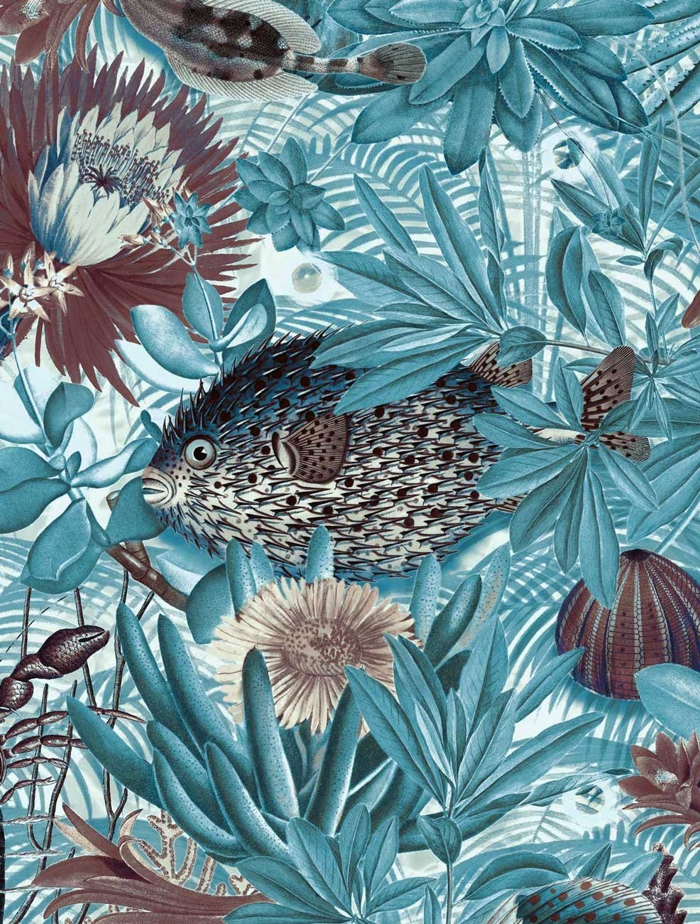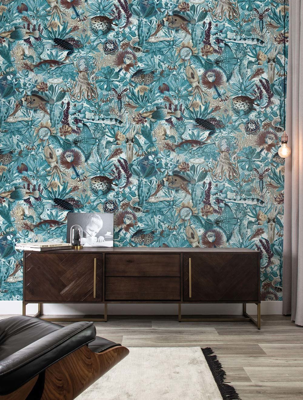 Dit behang is speciaal ontworpen voor mensen met interieurlef. De meest prachtige vissen en andere exotische waterdieren stelen hier de show. Door een uitgekiende mix van illustraties en bijzonder kleurgebruik ontstaat een levendige behangwand.