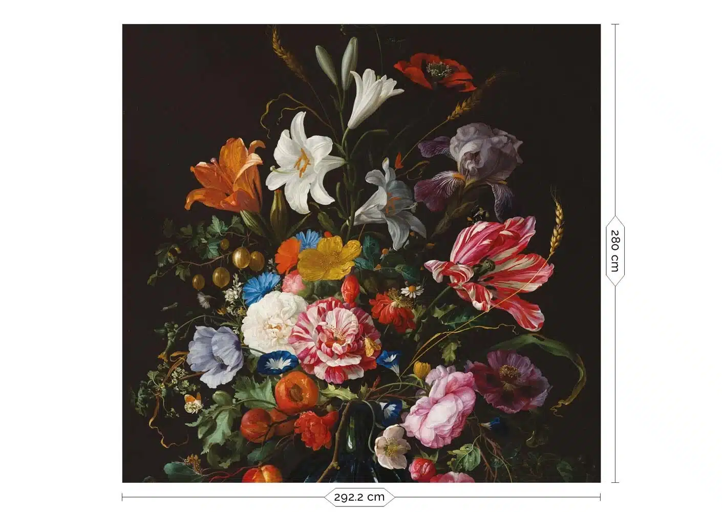 Dit behang is een uitsnede uit een beroemd schilderij van Jan Davidsz de Heem (1670). Het origineel hangt in het Rijksmuseum in Amsterdam. Bijna 350 jaar na dato kun jij dit kleurrijke bloemenbehang bij jou op de muur plakken. Geweldig toch?