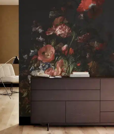 Duurzaam Fotobehang | Zwart behang met Bloemen | Golden Age Flowers | Kek Amsterdam | Peltenburg Natuurverf