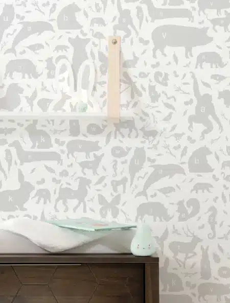 Duurzaam Kinderbehang | ABC Animal | Lichtgrijs | 97.4 x 280 cm | Kek Amsterdam | Peltenburg Natuurverf