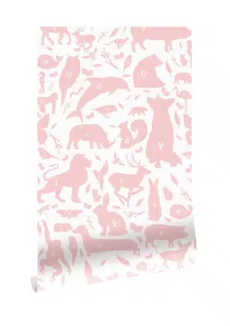 Duurzaam Kinderbehang | ABC Animal | Roze | 97.4 x 280 cm | Kek Amsterdam | Peltenburg Natuurverf