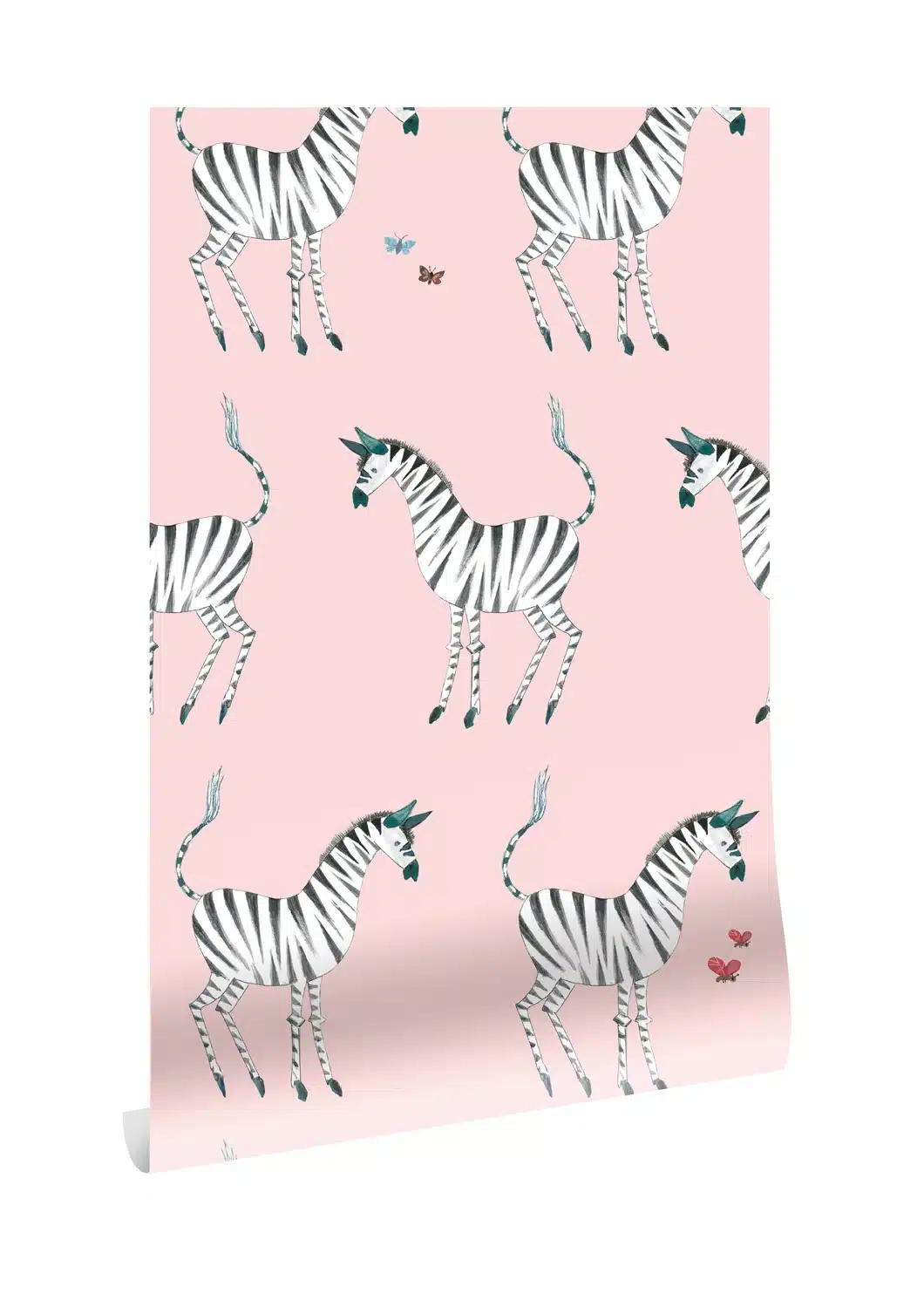 Duurzaam Kinderbehang | Zebra | Roze | 97.4 x 280 cm | Kek Amsterdam | Peltenburg Natuurverf